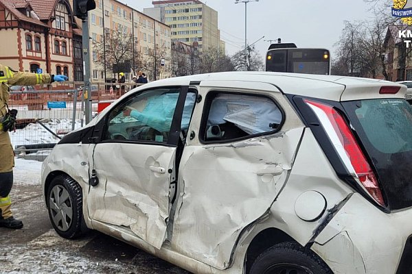 30.01.2026 Kolizja autobusu i osobówki w centrum miasta
