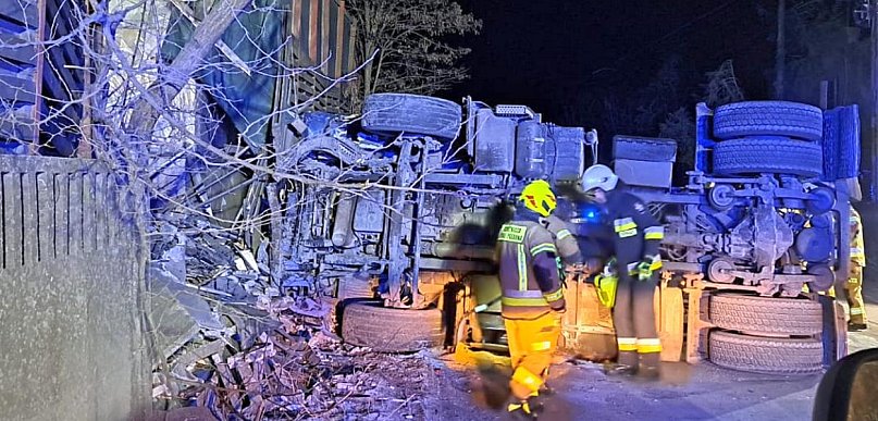 Dziś w nocy doszło do groźnie wyglądającego zdarzenia drogowego. 40-letni kierowca zasnął za kierownicą, co spowodowało, że uderzył w ogrodzenie i wywrócił auto.