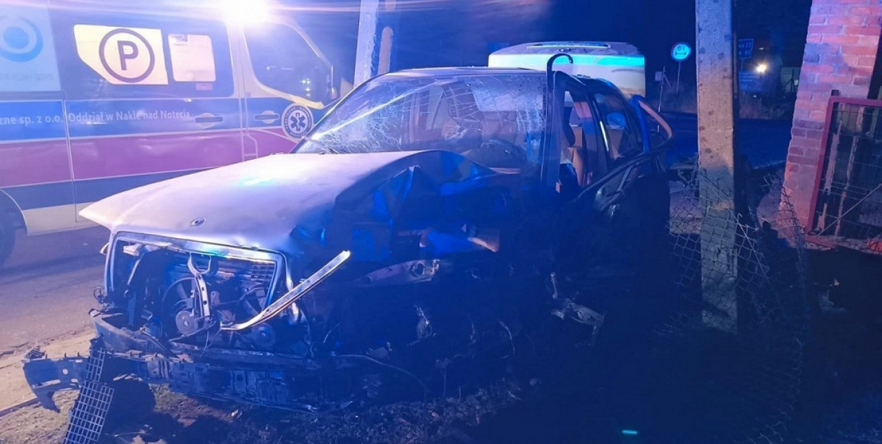 Dzisiaj w nocy (20.08.2025), około godziny 0:30, więcborscy policjanci otrzymali informację o zdarzeniu drogowym, do którego doszło w miejscowości Wąwelno (gmina Sośno). Ze wstępnych ustaleń funkcjonariuszy wynika, że 18-letni kierujący mercedesem stracił panowanie nad pojazdem, a następnie, zjeżdżając z drogi, uderzył w słup energetyczny i uszkodził ogrodzenie z siatki znajdującej się w pobliżu posesji.