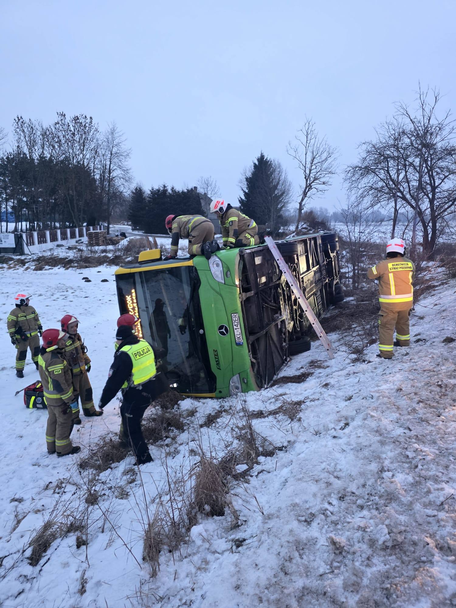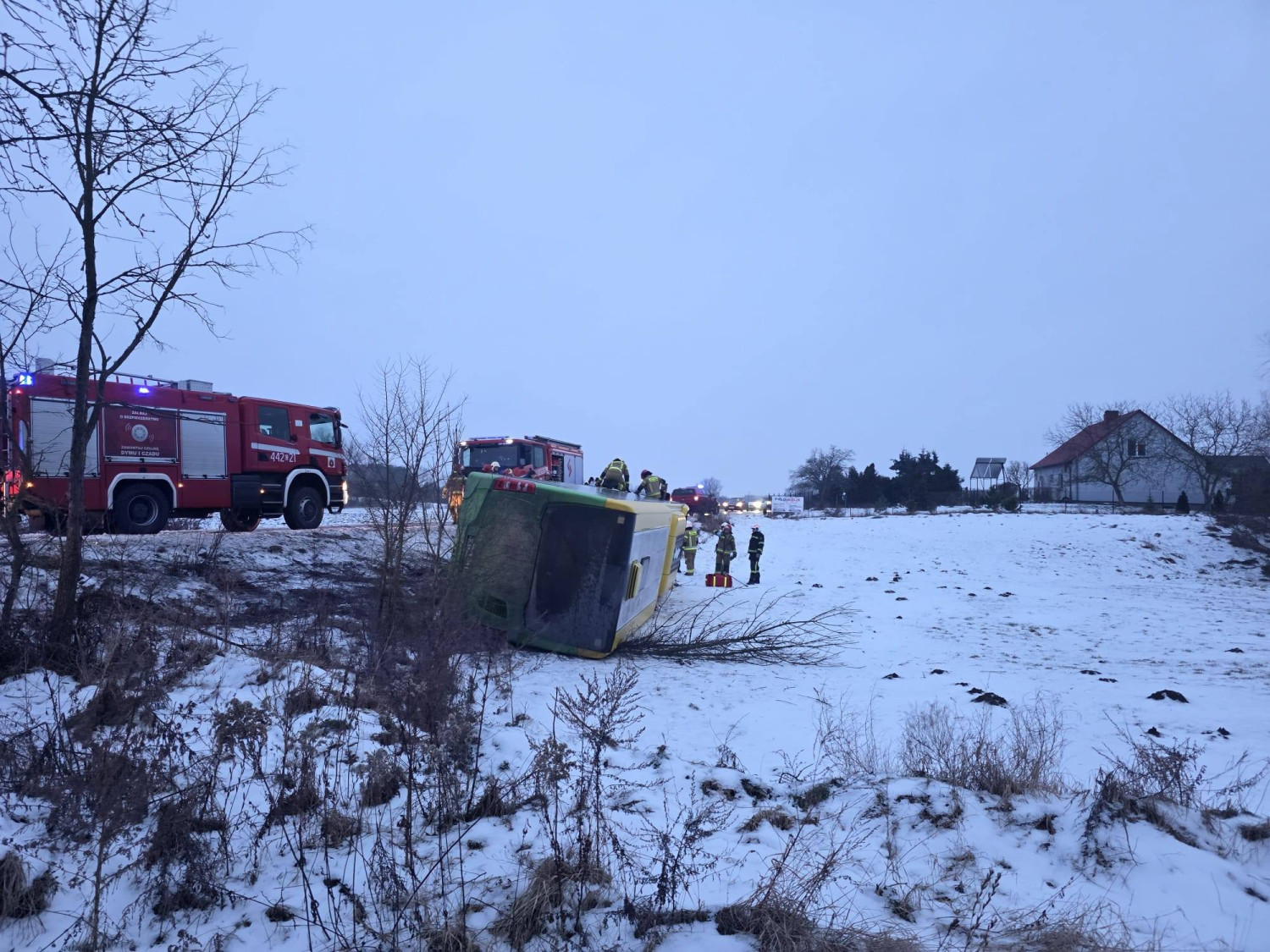 W miejscowości Szynych ok. godz. 7:00 doszło do kolizji z udziałem autobusu. Pojazd wypadł z drogi i przewrócił się na bok. Kierowca został przekazany pod opieką ZRM.