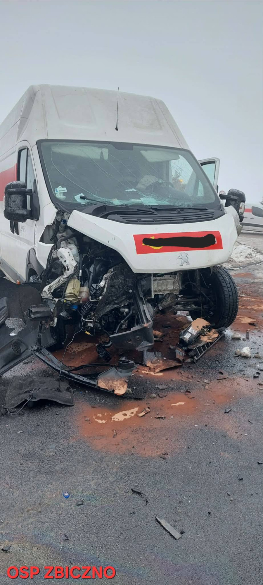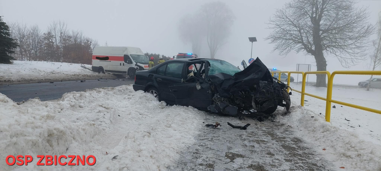 Dziś 27.01.2026 r. ok godz. 9:30 w miejscowości Żmijewko w gminie Zbiczno w powiecie brodnickim doszło do zderzenia samochodu osobowego z busem dostawczym.