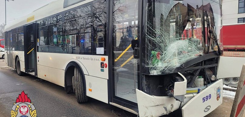 Dziś (30.01.2026 r.), ok. godz. 09:40, w Toruń, na skrzyżowanie ulic Tadeusza Kościuszki i Stefana Batorego doszło do zderzenia autobusu miejskiego i samochodu osobowego Toyota.